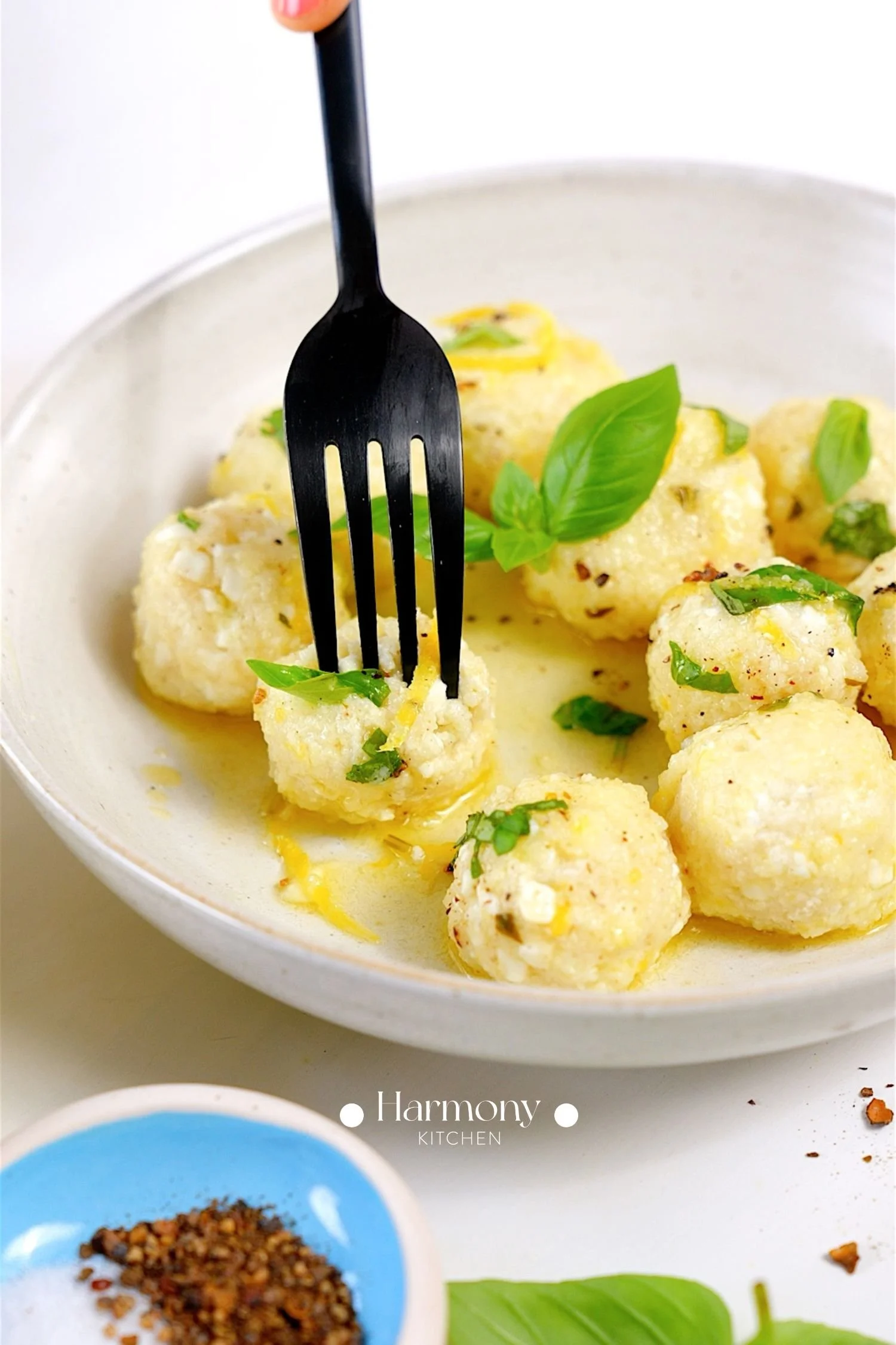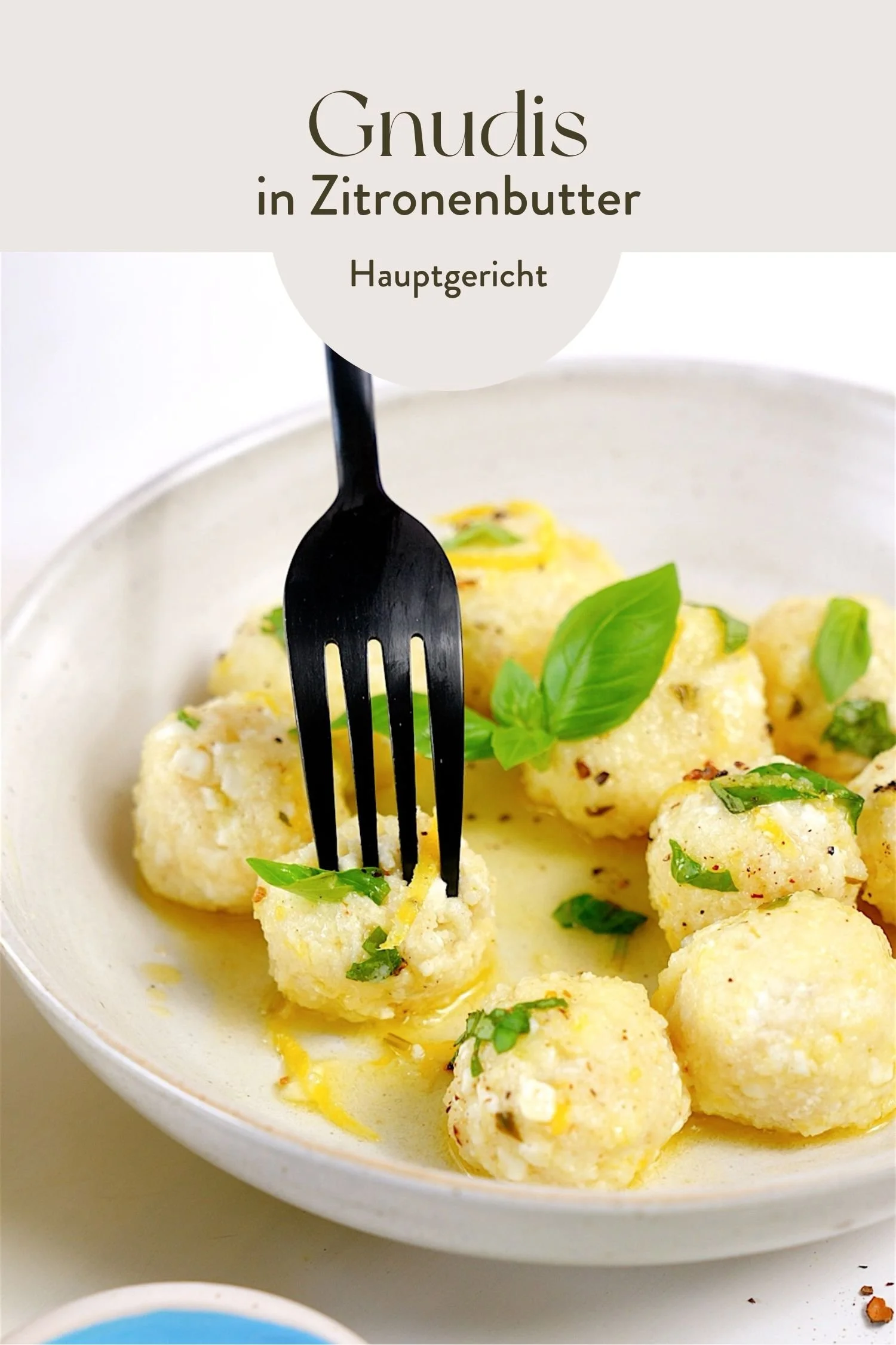 Lust dich neu zu verlieben? Dann stehen die Chancen gut, dass es mit dieser Köstlichkeit gelingt. Gnudis, das sind leichte, fluffige Ricotta- oder Frischkäseklöße – quasi wie Gnocchi, nur mit Käse und Grieß. Damit gewinnen sie eigentlich fast jedes Herz und das beim ersten Bissen. Nach dem Kochen drehen die cheesy Minibälle bei uns eine Runde in geschmolzener Butter, mitsamt der vollen Power von Zitrone. So bleibt die Kombi besonders aromatisch und erfrischend leicht. Natürlich darf dabei auch Basilikum nicht fehlen, weil – naja, irgendwie macht er ja alles immer ein bisschen schicker und leckerer.