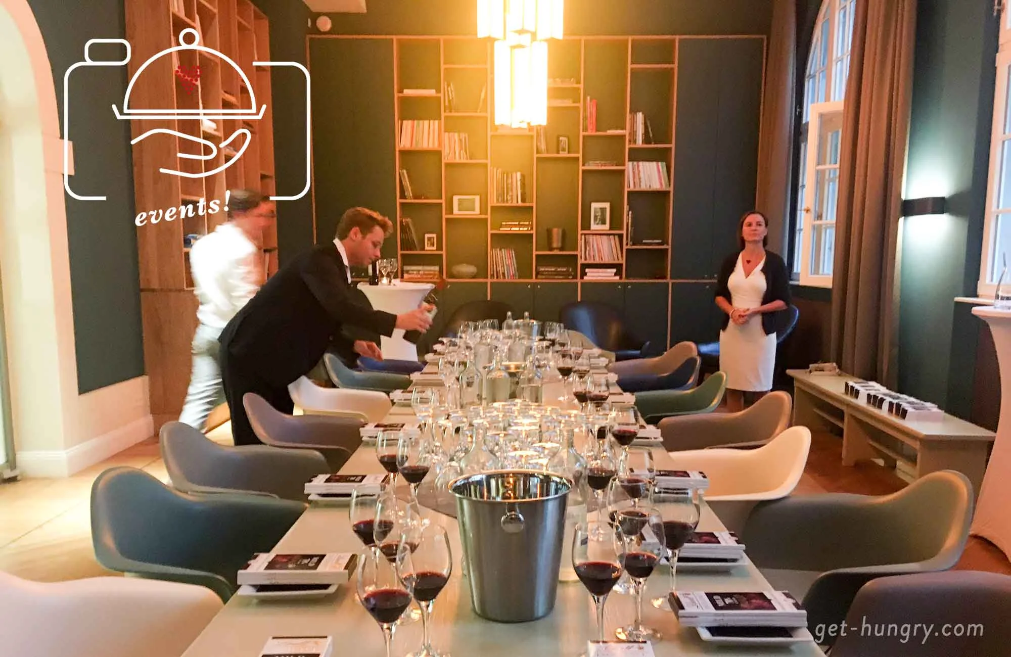 Natürlich treffen wir an diesem Abend auch auf die Sponsoren und Kunden. Das Gute, man hat Zeit zu plaudern, sich kennen zu lernen und mögliche Projekte zu besprechen. Daher verführt uns nach dem Rundgang direkt Lindt Schokolade mit zartbitteren Rippen und schwerem Rotwein. Ein zwar eher ungewöhnliches, aber dafür interessantes 'Amuse Gueule', gefolgt von einem herzhaften 5-Gänge-Menü, welches wir anschliessend im ehemaligen Heizraum (heute Restaurant) genießen.