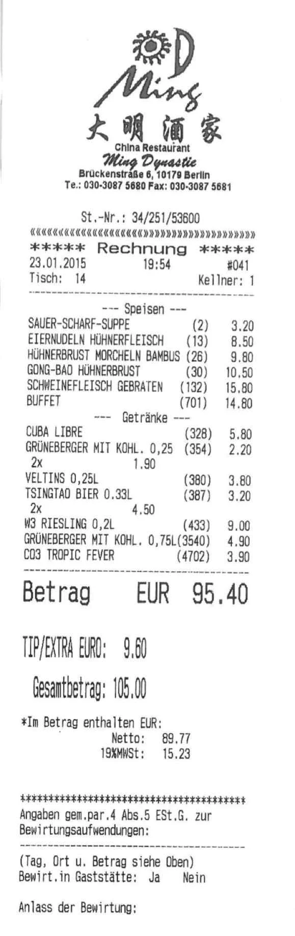 Mit jedem, der nichts gegen Bestellen nach Zahlen hat. Selbst Vegetarier kommen in der Ming Dynastie mit Gerichten wie 114. geschmorter Tofuhaut und 105. Sellerie mit Lilienblüten auf ihre Kosten. Und lehnen sich spätestens beim Mangoschnäpschen auf's Haus satt und zufrieden zurück in den Plüschstuhl.